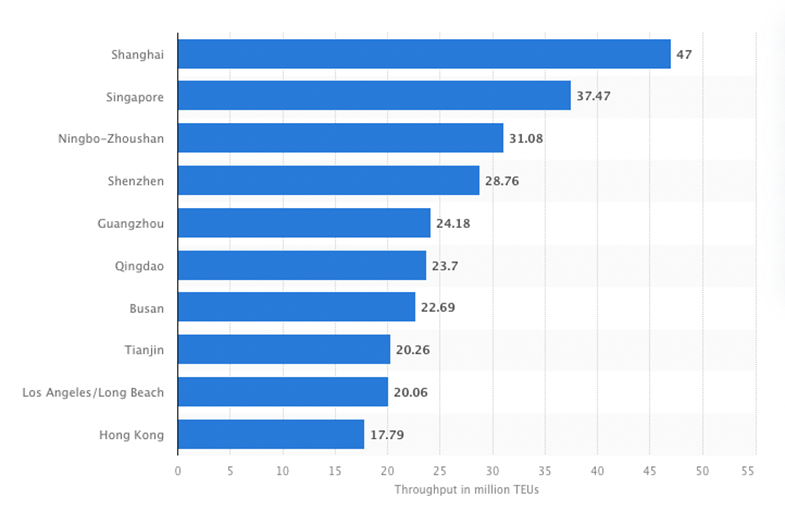 Według Międzynarodowej Organizacji Morskiej ONZ około 90 procent światowego handlu odbywa się drogą morską. Około 60 procent handlu morskiego odbywa się za pośrednictwem kontenerowców, które przewożą wszechstronne, metalowe kontenery morskie, które mogą być również transportowane koleją i ciężarówkami. Pojedynczy kontener można załadować na samochód ciężarowy w porcie, przetransportować koleją na duże odległości i ponownie dotrzeć do klienta końcowego ciężarówką. Innymi słowy, fracht morski jest ważnym punktem w międzynarodowej wysyłce multimodalnej. Porty międzynarodowe mają kluczowe znaczenie dla importu i eksportu towarów, takich jak surowce, żywność czy produkty konsumenckie. Obecnie na świecie funkcjonuje ponad 800 portów, w samych Stanach Zjednoczonych aktualnie działa aż 360 portów handlowych. Jednocześnie spośród setek portów, które każdego dnia dystrybuują towary, w rankingach Światowej Rady Żeglugi, to porty chińskie wiodą niezaprzeczalny prym.