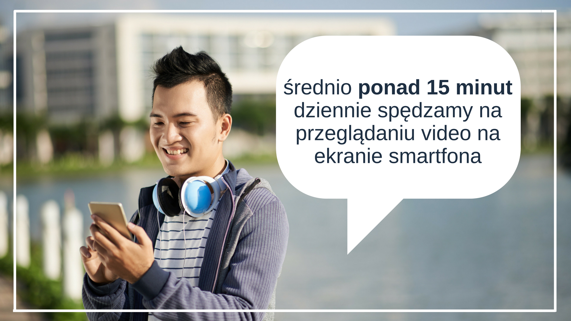 Użytkownicy coraz częściej dokonują konsumpcji treści za pośrednictwem urządzeń mobilnych. Według raportu Nilsena aż o 50% zwiększyła się liczba osób oglądających materiały filmowe w mobile’u w grupie wiekowej 18-49 lat. Szacuje się również, że pojedynczy użytkownik spędza średnio ponad 15 minut dziennie na przeglądaniu contentu video na ekranie swojego smartfona. W 2017 roku marki powiększyły wydatki na reklamy video w mobile’u aż o 400%. Dodatkowo prognozy na przyszłość wykazują, że tego rodzaju content będzie dalej zyskiwał na popularności.