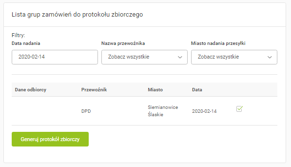 Jeśli wysyłasz przesyłki z wielu miast, może podzielić protokoły na poszczególne lokalizacje. Taką samą możliwość masz również, gdy korzystasz z kilku kurierów.