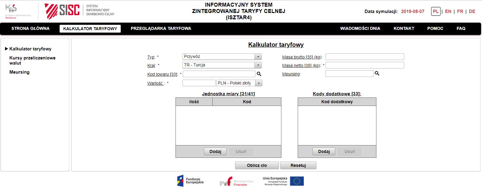 Wysokość cła jest możliwa do ustalenia dzięki systemowi ISZTAR (Informacyjny System Zintegrowanej Taryfy Celnej). Stawki zależą od kodów danych dóbr, czyli od grup produktów, do jakich zalicza się importowany towar.