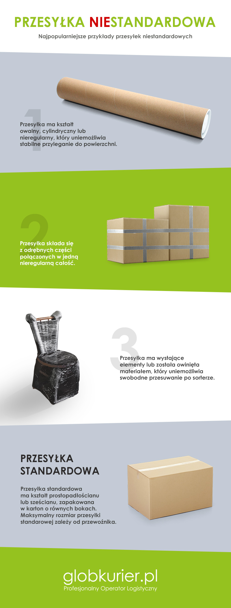 Przewoźnik kwalifikuję przesyłkę jako niestandardową, gdy: